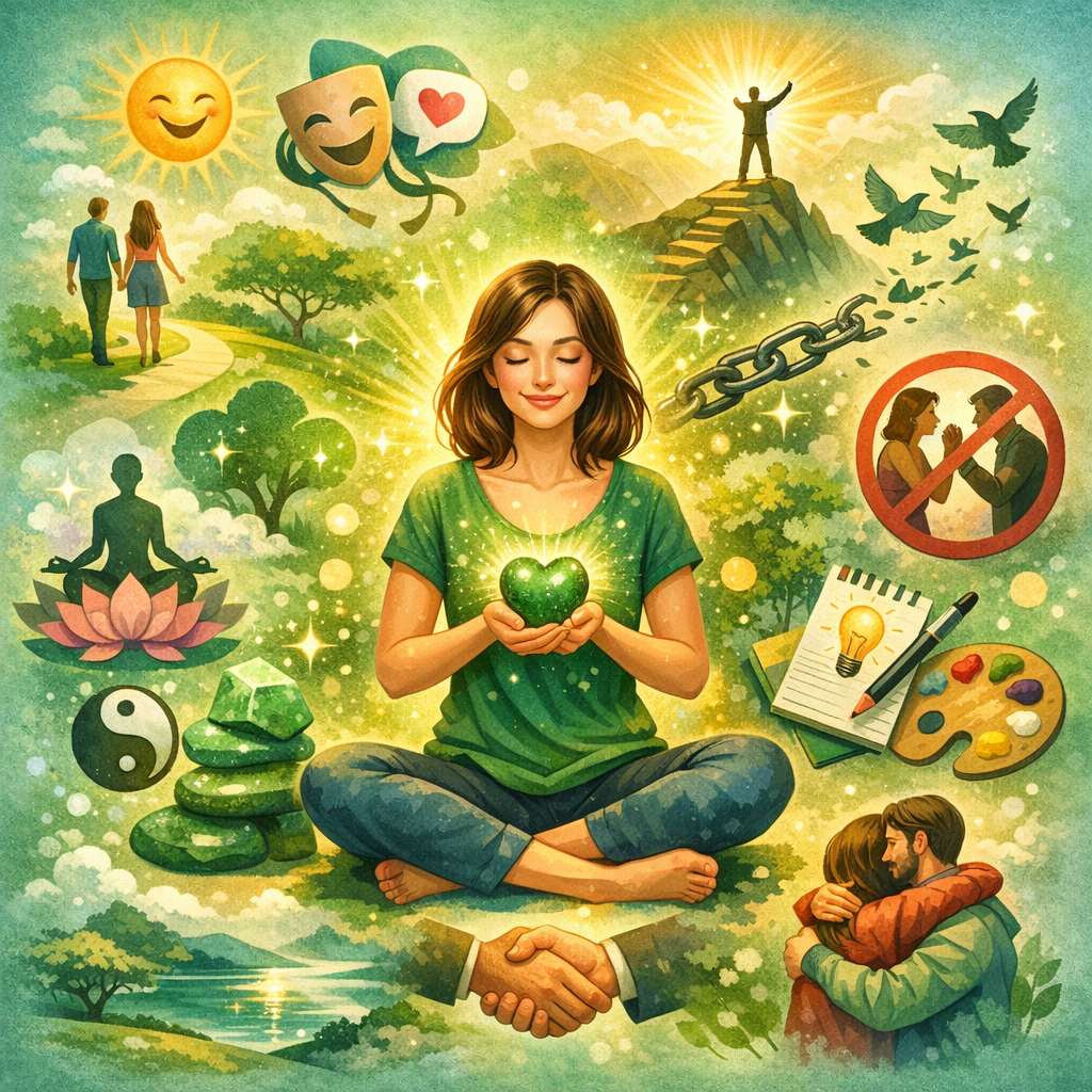 L’aventurine verte est liée au chakra du cœur, elle apporte paix de l’esprit, équilibre émotionnel, facilite la méditation, apaise les colères intenses, encourage l’ouverture du cœur, l’amour de soi et des autres. Elle agit également comme catalyseur de guérison émotionnelle.